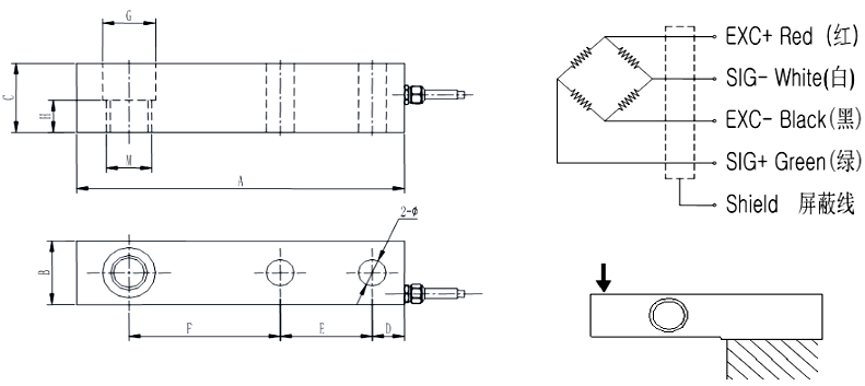安装尺寸及加载方式: