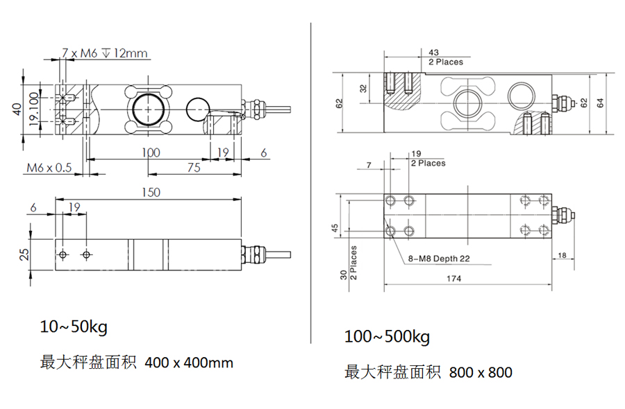 量程:10, 20, 50, 100, 200, 300, 500 kg