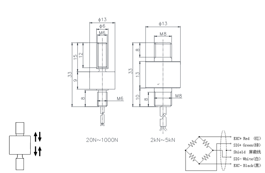 20,50,100,150,200,300,500N 1,2 ,3,4,5kN |