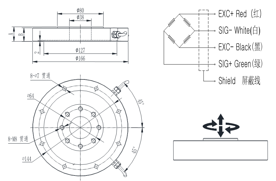 TK166拉压扭复合力传感器
