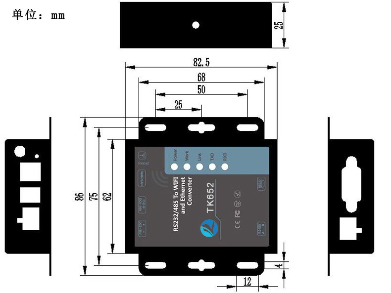 6、丰富的状态指示灯 Power、Work、Link、RXD、TXD ;